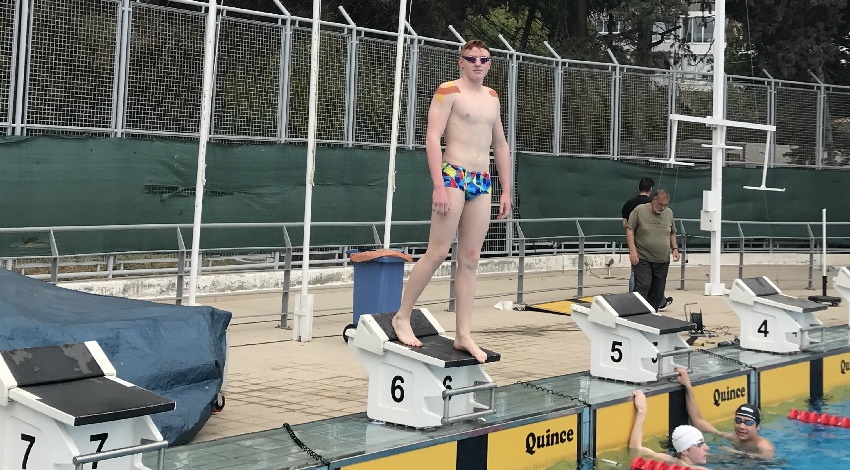 Miha Potočnik spremlja plavalca Nika Peterlina na dogodku Multinations Cupu Limassol na Cipru.